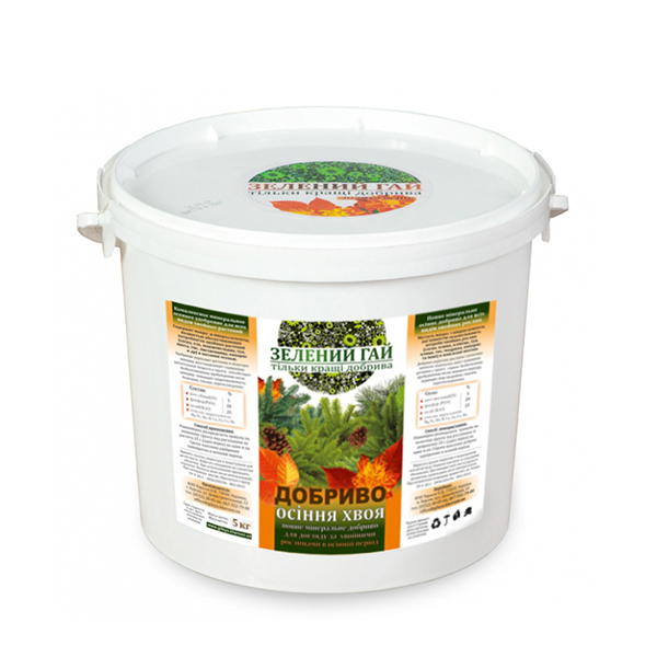 Зелений Гай Осіння хвоя (5 кг) - повне мінеральне осіннє добриво для всіх видів хвойних рослин (сосна, ялина, ялівець, туя, ялиця, тис, модрина, кипарис та інші) в живленні восени.
