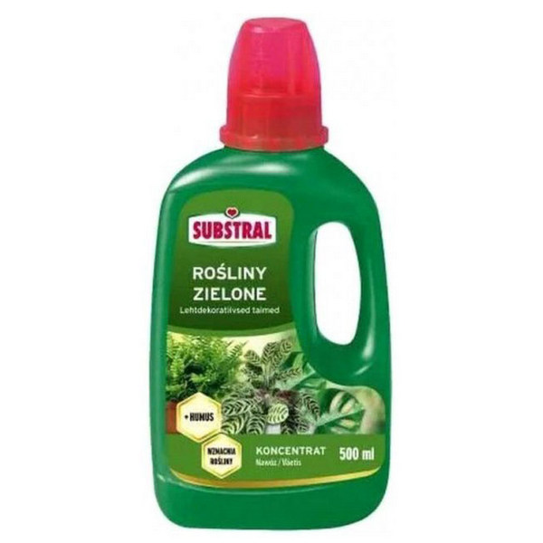 Добрива для зелених рослин і папоротей Substral (Субстрал), 0,25л. — концентрат розчину органо-мінеральних добрив для підживлення кімнатних зелених рослин. Містить усі поживні речовини (макро- та мікроелементи), необхідні для росту та розвитку рослин, які забезпечують збільшення обсягу рослини та яскравості листя протягом усього року. До спеціалізованого рідкого добрива для декоративно-листяних рослин Субстрал додано натуральний Леонардит (органічний осад з високим вмістом гумінової кислоти), який збільшує біологічну активність рослин, покращує засвоєння поживних речовин із ґрунту та вбирання води. Регулярне використання добрива Субстрал для зелених рослин знижує стрес рослин та підвищує стійкість до хвороб. Купити добрива для зелених рослин та папоротей Substral, 0,5л. можна у вигляді концентрату та подальшим розведенням з водою перед використанням. Склад добрива: Кислотність (рН) 6,5 Компонент мінерального добрива NPK 7:3:5 + мікроелементи, гумус Загальний азот (N) 7%, у тому числі 1,7% нітратного азоту, 1, 8% амонійного азоту, 3,5% азоту сечовини Водорозчинний п'ятиокис фосфору (P2O5) 3,0% Водорозчинний оксид калію (K2O) 5,0% Водорозчинні мікроелементи: залізо (Fe) 0,03%, марганець (Mn) %, мідь (Cu) 0,002%, Цинк (Zn) 0,002%, молібден (Мо) 0,001%. Вміст органічних речовин 0,15-0,2% Вміст органічного вуглецю 6-9% Фульвокислота 1,5-2,5%