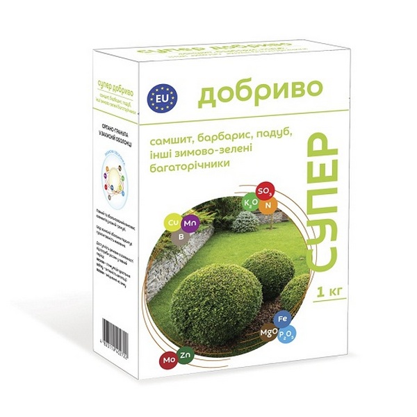 Супер Добриво для Самшиту, барбарису, падубу та інших зимово-зелених багаторічників.