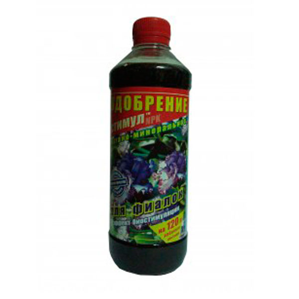 Комплексне, збалансоване органо-мінеральне добриво, що містить макро- і мікроелементи в формах, що легко засвоюються. Добриво стимулює цвітіння, покращує опірність інфекціям та стресам, забезпечує повноцінне харчування та розвиток рослин, підвищує стійкість до хвороб. Пропоноване добриво застосовується тільки для кореневого підживлення. Пляшка удобрення "Стимул" для фіалок розрахована на 120 літрів робочого розчину. Добриво включає комплекс макро- і мікроелементів, гумусових речовин не менше 30г/л.