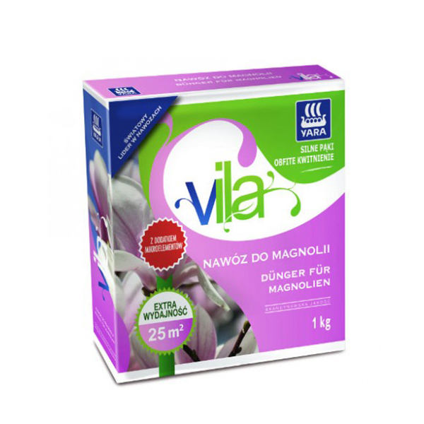 Гранульоване добриво Yara Vila для магнолій 3 кг - призначене для догляду за деревами та чагарниками магнолій. Багатий склад добрива та додавання магнію та бору забезпечити пишне зростання та супутні сильні та здорові нирки. Добриво також впливає на інтенсивність фарбування кольорів та продовжує цвітіння. Регулярне використання підвищує стійкість рослин до хвороб та морозу. Простота у використанні - не вимагає змішування із ґрунтом. Застосування: Застосовують з інтервалом близько 60 днів, двічі на період вегетації. Перше внесення добрива проводиться у квітні-травні, наступне - у червні-липні. Добриво рівномірно розсіюють на зовнішню периферію крони рослини, потім ретельно поливають водою. Для молодих посадок підживлення виконується провесною (березень). Дозування: Молоді насадження: на кожну рослину близько 30-40 г/м2. Старі насадження: на кожну рослину 40-50г/м2 (4-5kg/100м2) Розфасовка: 1 та 3 кг