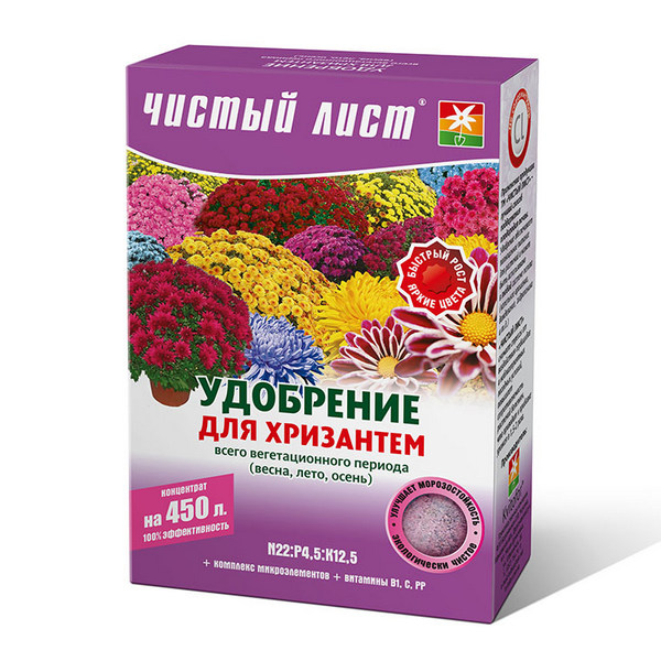 Чистий лист кристалічне добриво для хризантем (300 гр) - високоефективне, концентроване, мінеральне добриво, що містить всі необхідні для живлення рослини елементи в доступних формах.