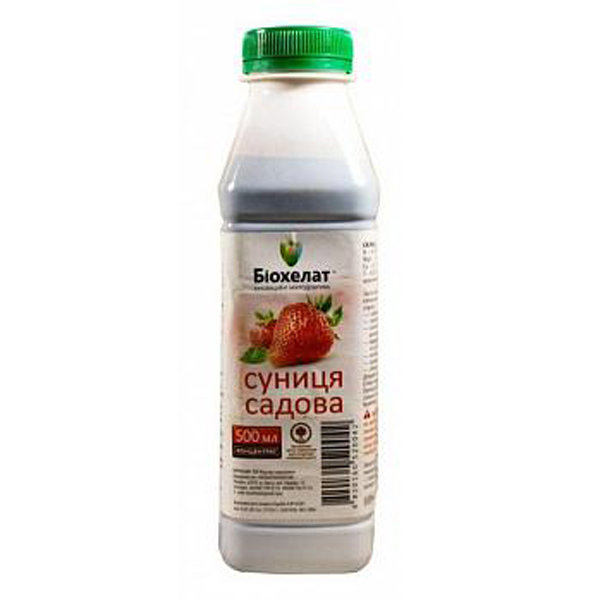 Добрива Біохелат Суниця садова - поліхелатне мікродобрива нового покоління для підживлення суниці садової. Оновлена формула дозволяє отримувати плоди найвищої якості. Дія: Незамінний на карбонатних ґрунтах. Хелатний комплекс мікроелементів, що входить до препарату, не руйнується і доступний рослинам протягом тривалого часу (до 3-х років), не вимивається з ґрунту і не переходить у нерозчинну форму, стійкий до мікробіологічного розкладання. Біохелат “Суниця садова” оптимізує харчування рослин, запобігаючи мікроелементозним захворюванням (залізний, марганцевий, цинковий хлорози). Активізуються метаболічні процеси. Рослини стають більш стійкими до температурного, водного, сольового стресу. Підвищується стійкість до грибкових, бактеріальних, вірусних захворювань. Максимально збільшується врожайність та якість плодів. Хелатна форма мікроелементів сприяє прискоренню цвітіння та зав'язі плодів, поліпшенню смакових якостей, зниженню рівня нітратів, збільшенню термінів зберігання, поліпшенню цвітіння та запилення, розвитку кореневої системи та листової поверхні. Підвищується стійкість до вимерзання. Збільшується накопичення цукрів на 1.5 - 2.5%. Поліпшуються смакові, ароматичні якості ягід. Комплексонат Бора (В) запобігає занепаду зав'язей. Комплексонат Молібдену (Мо) сприяє нагромадженню вітамінів, ферментів, поліфенолів, що дозволяє отримувати продукцію найвищої якості з дієтичними характеристиками. Концентрація мікроелементів найбільш фізіологічна і відповідає їхньому вмісту в живих рослинних тканинах. Застосування такого добрива є невід'ємним елементом сучасних інтенсивних технологій.