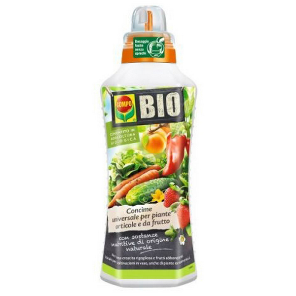 Рідке органічне добриво Compo Bio підходить для всіх фруктових та овочевих рослин. Сприяє здоровому зростанню та дозріванню ароматних плодів. Усі інгредієнти відповідають вимогам органічного рослинництва за правилами ЄС 834/2007. Швидкодіюча формула сприяє зростанню коренів та стійкості до захворювань. Призначений для кореневого внесення.