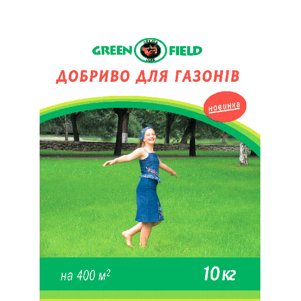 склад: 26% (N) азот повний, 15% фосфору (Р2О5) розчинного у воді, 9,0% (К2О) калію розчинного у воді. Рекомендується застосовувати в період з весни до кінця серпня через кожні 3 тижні в дозах 25 г/1 м2 газону. Добриво розсипати рівномірно поверхнею газону, найкраще після скошування. Регулярний полив збільшує ефективність добрива. Не рекомендується застосовувати за сонячної погоди, а також під час сильного вітру. Запобіжні заходи: Добриво може бути небезпечним для здоров'я у разі внутрішнього потрапляння в організм. В цьому випадку необхідна порада лікаря. У разі потрапляння в очі їх необхідно промити великою кількістю води і проконсультуватися з лікарем. Зберігати в недоступному для дітей місці. Рекомендується працювати у рукавичках. Добрива залишають коричневі плями на бетонних, керамічних та кам'яних поверхнях. У разі потрапляння на ці поверхні його треба негайно усунути. Упаковка розрахована на 400м2.