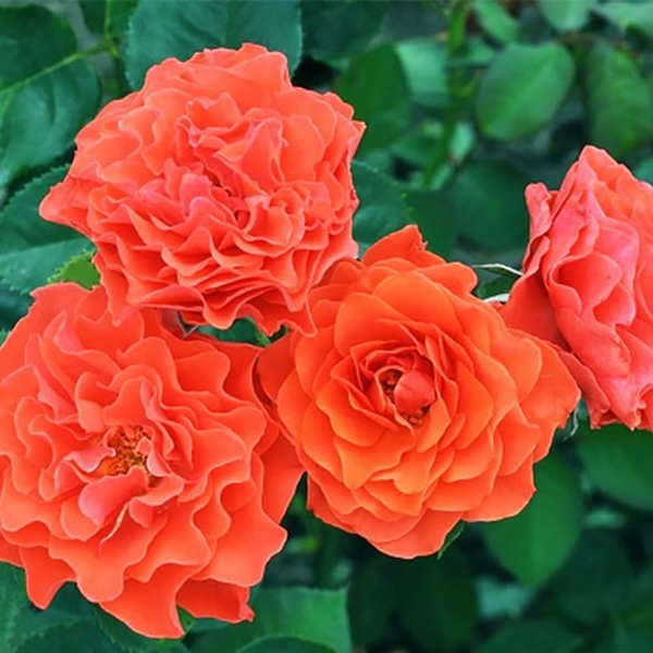 Роза флорибунда Бранд Піксі (Brand Pixie) - чудова квітуча троянда з яскравими червоно-оранжевими квітками. Квітки 7-9 см у діаметрі, махрові, з красиво покладеними гофрованими пелюстками, розкриваються повільно і довго тримають гарну форму, випромінюють дуже приємний солодкий аромат. Викликає захоплення у квітнику. Цінується як зрізальна троянда, довго стоїть у вазі.