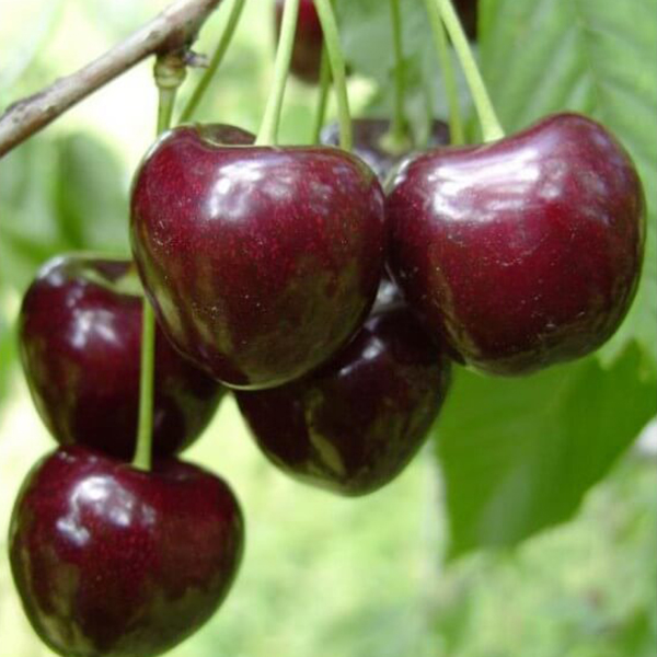 Плоди дуже великі, темно-бордового кольору. При дозріванні не лопаються. М'якуш щільний, пружний і хрумкий. Шкірка щільна, плоди можуть довго висіти на дереві. Сік насиченого червоного кольору. Кісточка велика, від м'якоті добре відокремлюється. Форма плоду як широкого конуса, схожа на серце. Сорт черешні Карина стерильний. Тому для запилення необхідно поруч посадити вишні чи черешню сортів Бланка, Сам. Дерево відрізняється досить міцною деревною корою, за рахунок чого добре пручається грибковим ураженням. Крона формується швидко, необхідне регулярне обрізання. Достоинства сорту: - Пізнє дозрівання - На дереві плоди, що встигли, можуть висіти не падаючи дуже довго - Кісточка легко відділяється, не порушуючи цілісності м'якоті - Відмінно протистоїть захворюванням - Сорт добре переносить зимові заморозки.