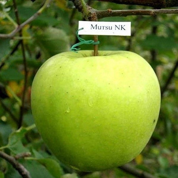 Яблуня Мутсу - популярний пізньозимовий сорт японської селекції з довгим періодом зберігання та високими смаковими якостями яблук. Десяти-дванадцятирічні дерева дають урожай 40-70 кг з дерева, хороший рік - до 150 кг плодів. Урожай збирають наприкінці вересня, при настанні стиглості, що знімається. Споживча стиглість настає у січні, після чого яблука можуть зберігатися 3-4,5 місяці, а в холодильнику – до травня. Плоди досить великі, масою 160-280 г, жовтувато-зелені, сплющено-конічної форми. М'якуш світлий, з кремовим відтінком, щільний, середньо-зернистий, соковитий, ароматний, гармонійного кисло-солодкого смаку. Шкірка товста, щільна, гладка та блискуча. Дерева середньої величини, з широкою, високою та круглою кроною з міцними гілками. Стійкість до хвороб вища за середню. Зимостійкість висока. Рекомендації з посадки та догляду: Найкращий час посадки саджанців яблуні — осінь та весна. Для посадки яблуні слід підібрати сонячне, захищене від вітру місце. Ґрунти переважно свіжі, родючі, із заляганням ґрунтових вод не ближче 2,5 м від поверхні. Готують посадкову яму діаметром 80 см та глибиною 80-100 см. Йому заправляють органічними та мінеральними добривами, щоб забезпечити рослині гарний старт. Після посадки рослину рясно поливають. При посадці кореневу шию не заглиблювати! Відстань між деревами 5-6 м. Догляд полягає в достатніх поливах і регулярних підживленнях, грамотному щорічному обрізанні, видаленні бур'янів у прутовому колі. Для яблуні сорту Мутсу характерне навантаження врожаєм, тому рекомендується проріджувати зав'язь. Саджанець з відкритою кореневою системою