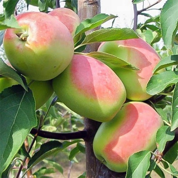 Плоди великі або середньої величини, подовжено-циліндричної форми, з дещо конічною верхівкою і основою, рівні, гладкі, вагою 120-140 г. М'якуш жовтувато-білий, ніжний, соковитий. Смак яблук слабкий, досить прісний, практично несмачний до повного визрівання. Легкий кисло-солодкий присмак плоди набуває наприкінці періоду дозрівання. Має дуже тонкий, ледь відчутний аромат.
