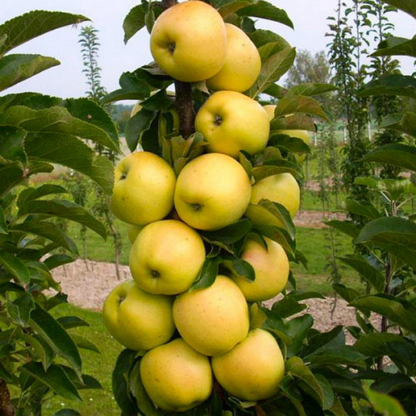 Яблуня колоноподібна Медок (Medoc) – преміальний осінній високоврожайний сорт. Як і всі інші низькорослі яблуні цього сорту ідеально підходить для вирощування на дачі - скороплідні і займають мало місця. Всього одна така ранньоосіння низькоросла яблуня при правильному догляді може принести до 2 відер великих солодких плодів. Такі яблука користуються популярністю в дієтичному харчуванні – плоди жовтих сортів яблунь не викликають алергії.