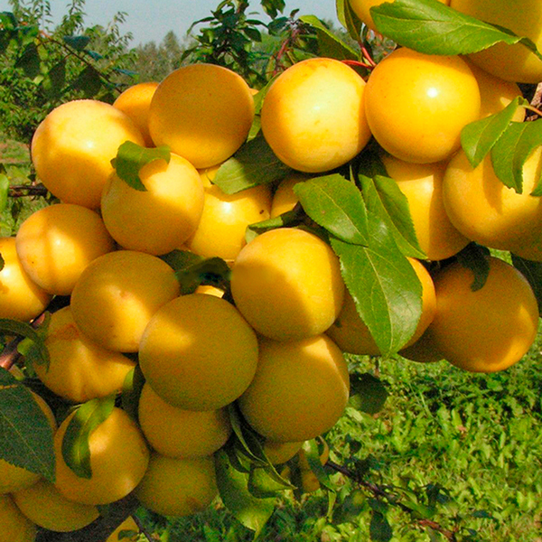 Плоди великі (20-25 і до 35 г), округло-яйцеподібні, з тонким восковим нальотом. Смакові якості-М'якуш жовтий, напівпрозорий, щільний, соковитий, кислувато-солодкий.