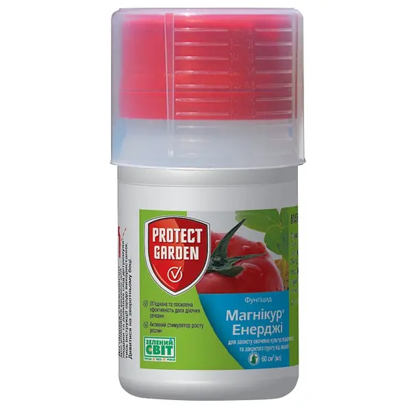 Магнікур Енерджі - препарат системної дії з ефектом стимуляції росту рослин. Застосовується садівниками та агрономами в основному для захисту проти пероноспорозу та кореневих гнилей огірків та томатів. Компоненти препарату забезпечують повний системний захист, а також стимулюють ріст, розвиток та зміцнюють імунітет рослини. Має подвійний ефект: з одного боку - пряма фунгіцидна дія, з іншого - стимуляція природного імунітету рослини проти патогенів, є активним стимулятором росту рослин як кореневої, так і надземної частини, має широкий спектр дії проти великої кількості грибів, які вражають насіння, проростки, стебла, листя та плоди рослин у закритому та відкритому грунті, забезпечує тривалий системний захист культур від хвороб протягом усього сезону. Обробка проводиться методом обприскування чи поливу. Для обробки достатньо розвести 3-5 г препарату на 3-5 л води. Приготовленого розчину достатньо для обробки 1 сотки.