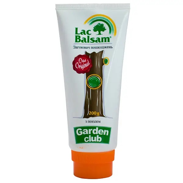 Садовий Лак Бальзам являє собою пастоподібний засіб для обробки ран і зрізів на деревах і чагарниках, що виникли через сонячні опіки або механічні пошкодження, включаючи плодові та декоративні рослини. До складу даного продукту входять водна дисперсія сополімерної смоли, мінеральні добавки, технологічні компоненти, барвники та вода. Загоюючий садовий бальзам має антисептичні властивості, запобігає потраплянню шкідливих спор та бактерій у пошкоджені місця, а також стимулює відновлення рослин та загоєння ран завдяки смолі та мінеральним компонентам. При нанесенні, засіб формує пружну плівку, яка чудово схоплюється з деревиною, допомагає швидко затягувати рани і забезпечує ефективне загоєння пошкоджень.