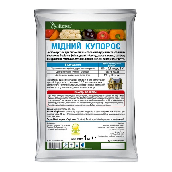 У розчинах мідного купоросу протруюють насіння перед посівом для знищення спор цвілевих грибів на насінні.
