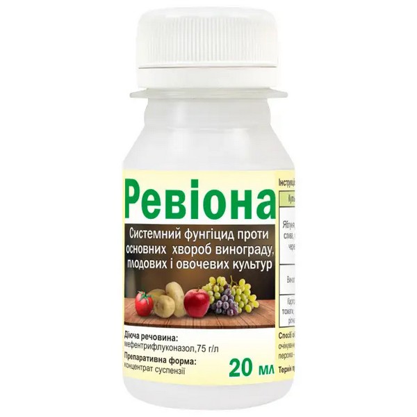 Ревіона® на основі унікальної нової діючої речовини Ревісол® забезпечує найширший спектр контролю захворювань багатьох економічно шкідливих хвороб, які вражають усі основні зерняткові та кісточкові плоди. Забезпечує надійний контроль захворювань за будь-яких температурних умов. Польові випробування за температури +3–31°C підтверджують надійну ефективність Ревіона®. Температура не є обмежувальним фактором.
