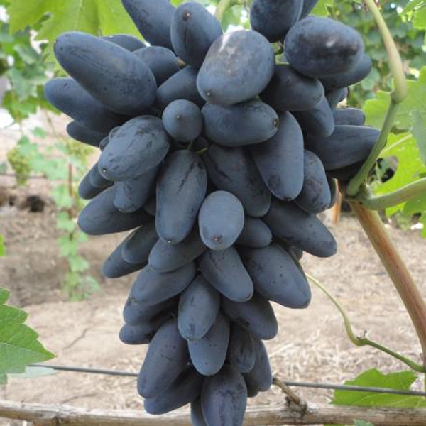 Виноград Вікінг - столовий сорт винограду селекції Загорулько В.В., примітного раннім терміном дозрівання (110-115 днів) та красивими великими, дуже смачними ягодами. Плоди дозрівають на початку серпня. Ягоди великі, темно-сині з восковим нальотом, цікавої яйцеподібної форми, довжиною до 34 мм, завширшки – близько 22 мм, масою 8-13 грам. Смак дуже приємний, гармонійний, із присмаком чорносливу. Кетяги досить пухкі, конічної форми, масою 500-900 грам, окремі грона - до 1 кг. Ягоди довго тримаються на кущі, майже до кінця вересня, без втрати смакових якостей. Транспортабельність хороша. Кущ сильнорослий з потужними і сильними пагонами, квітка двостатева. Сорт Вікінг підійде навіть новачкам, бо дуже невибагливий у догляді. Стійкість до хвороб середня. Витримує морози до -20 °С. Рекомендації з посадки та догляду: Кращий час посадки винограду - осінь та весна. Винограду потрібно підібрати сонячне місце, що прогрівається, захищене від холодних вітрів. Грунт повинен бути пухким, добре дренованим, родючим. Готують посадкову яму діаметром 80-100 см та глибиною 60-65 см. Йому заправляють органічними та мінеральними добривами, щоб забезпечити рослині гарний старт. Після посадки рослину рясно поливають. Відстань між кущами 2,50-3,0 м. Догляд протягом сезону полягає у своєчасному поливанні та підживленні, видаленні бур'янів. Дуже корисно підгодовувати виноград деревною золою: навесні – для зміцнення коріння рослини, влітку щоб підвищити цукристість плодів. На зиму виноград сорту Вікінг потрібно вкривати. .