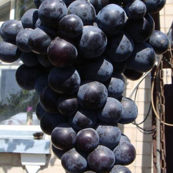 Виноград Айдар - високоврожайний гібрид української селекції (Луганськ) дуже раннього терміну дозрівання (100-110 днів) із дуже гарною якістю ягід. Плоди дозрівають наприкінці липня. Врожайність 4-6 кг ягід із куща. Ягоди овальні, великі, розміром 34 х 30 мм, масою 12-14 г, темно-червоні, що набувають темно-синього або майже чорного забарвлення при повному дозріванні. Шкірка щільна, що з'їдається. М'якуш соковитий, щільний, приємного смаку з присмаком стиглої вишні. Кетяги красиві, середньої щільності, дуже великі (700-1000 г), циліндричної або циліндрично-конічної форми. .Ягоди не розтріскуються від дощу і не ушкоджується осами. Використовується переважно у свіжому вигляді. Добре зберігається, транспортабельний. Кущі сильно-рослі з потужними пагонами, довжиною 120-135 см. Лоза визріває добре. Відмінно розмножується укоріненням живців. Квітки двостатеві. Посухостійкий. Стійкий до грибкових хвороб. Витримує морози до -23°С Рекомендації з посадки та догляду: Кращий час посадки винограду - осінь та весна. Винограду потрібно підібрати сонячне місце, що прогрівається, захищене від холодних вітрів. Грунт повинен бути пухким, добре дренованим, родючим. Готують посадкову яму діаметром 80-100 см та глибиною 60-65 см. Йому заправляють органічними та мінеральними добривами, щоб забезпечити рослині гарний старт. Після посадки рослину рясно поливають. Відстань між кущами 1,20 м-1,5 м між рядами - 2 м. Обрізка лоз на 8-10 бруньок. Догляд протягом сезону полягає у своєчасному поливанні та підживленні, видаленні бур'янів. Дуже корисно підгодовувати виноград деревною золою: навесні – для зміцнення коріння рослини, влітку щоб підвищити цукристість плодів. При обрізанні лоз плодоношення слід залишати 6-8 очок на пагоні, щоб навантаження не перевищувало 22-24 пагони, або 30-35 очок на кущ. Висока врожайність. На одній плодоносній втечі може сформуватися до 3 грон, тому необхідно проводити нормування врожаю. На зиму виноград сорту Айдар вкривають.