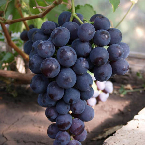 Виноград Рошфор - урожайний сорт столового винограду понад ранній термін дозрівання (105-110 днів). Плоди дозрівають наприкінці липня-початку серпня. Середня врожайність. Ягоди великі, масою 6-8 г, темно-червоного кольору з фіолетовим відливом. М'якуш щільний, хрумкий, гармонійного смаку, з легким мускатним присмаком. Кетяги великі, масою до 0,5 -0,9 кг, конічні. Лежкість та транспортабельність хороша. Кущ сильно-рослий. Дозрівання пагонів хороше. Живці відмінно укорінюються. Стійкість до захворювань середня: 3-3,5 бали: за 5-бальною шкалою. Стійкість до морозу, ° С: -23 Рекомендації з посадки та догляду: Кращий час посадки винограду - осінь та весна. Винограду потрібно підібрати сонячне місце, що прогрівається, захищене від холодних вітрів. Грунт повинен бути пухким, добре дренованим, родючим. Готують посадкову яму діаметром 80-100 см та глибиною 60-65 см. Йому заправляють органічними та мінеральними добривами, щоб забезпечити рослині гарний старт. Після посадки рослину рясно поливають. Відстань між кущами 1,20 м-1,5 м між рядами - 2 м. Обрізка лоз на 8-10 бруньок. Догляд протягом сезону полягає у своєчасному поливанні та підживленні, видаленні бур'янів. Дуже корисно підгодовувати виноград деревною золою: навесні – для зміцнення коріння рослини, влітку щоб підвищити цукристість плодів. При обрізанні лоз плодоношення слід залишати 6-8 очок на пагоні, щоб навантаження не перевищувало 22-24 пагони, або 30-35 очок на кущ. Висока врожайність. На одній плодоносній втечі може сформуватися до 3 грон, тому необхідно проводити нормування врожаю. На зиму виноград сорту Рошфор укривають. Саджанець упакований у пакет із торфом