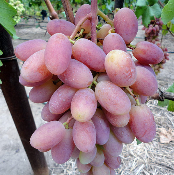 Виноград Віктор, селекція Крайнова В.М. Термін дозрівання винограду Віктор дуже ранній чи ранній. Зазвичай дозріває на початку серпня. Зростання кущів сильне, лоза визріває добре. Квітка двостатева, запилюється добре. Кетяги середньої щільності, великі, масою 500 - 1000 г, іноді до 1500 г. Ягоди дуже великі, масою 9-14 г (34 х 20 мм до 42 х 26 мм). За формою довгі зі злегка загостреним кінчиком. Колір ягід рожевий або жовто-рожевий, що визріли, залежить від місця знаходження грона (у тіні або на сонці) і стадії дозрівання. У тіні фарбується краще, на сонці часто обпалюється.