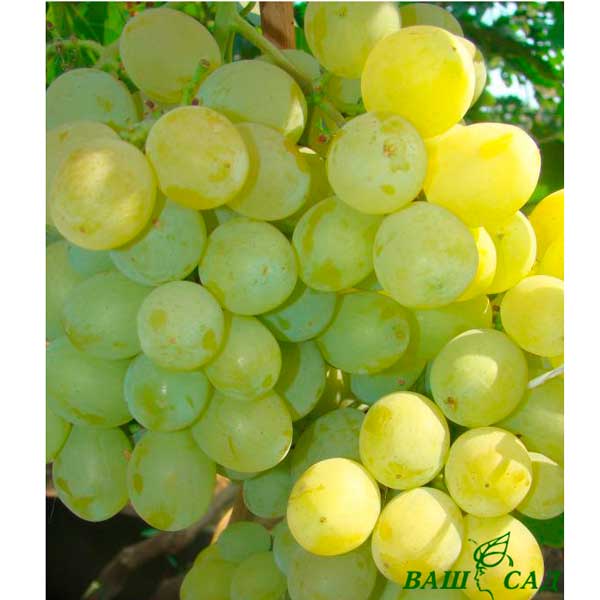 Сила зростання: сильний Термін дозрівання: дуже ранній 100 днів Маса грона, кг: 0,5-0,9 Вага ягоди, гр: 8-10 Колір ягоди: янтарно-білий Смак (присмак) ягоди: слабкий цитрус Сприйнятливість до захворювань, балів : 3-3,5 Стійкість до морозу, ° С: -23