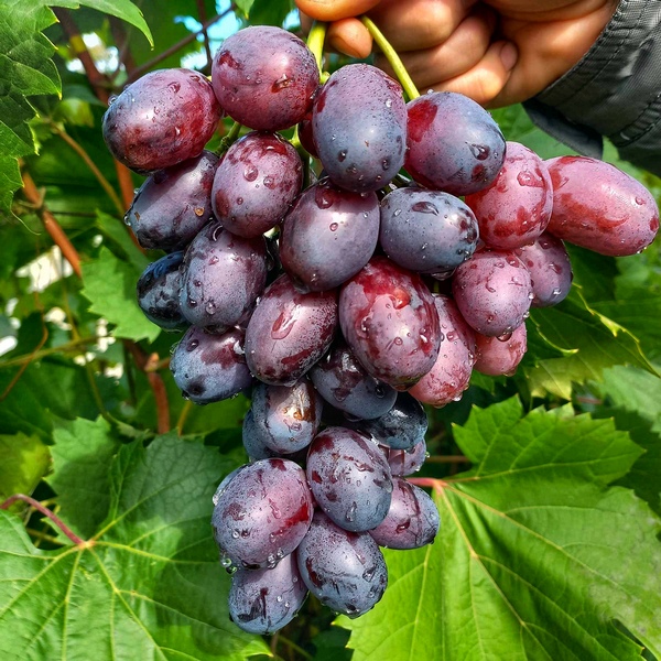 Кетяги дуже великі, середньою масою 1000 - 2000 грам, і більше, конічної форми. Ягоди витягнуто – овальні, з невеликим звуженням біля основи, темно-фіолетового забарвлення, великі вагою від 20 до 30 грам. М'якуш щільний, хрумкий, солодкий, з відмінними смаковими якостями, гарного гармонійного смаку. Стійкість до захворювань у результаті випробувань відзначена як висока. Морозостійкість до -25°С.