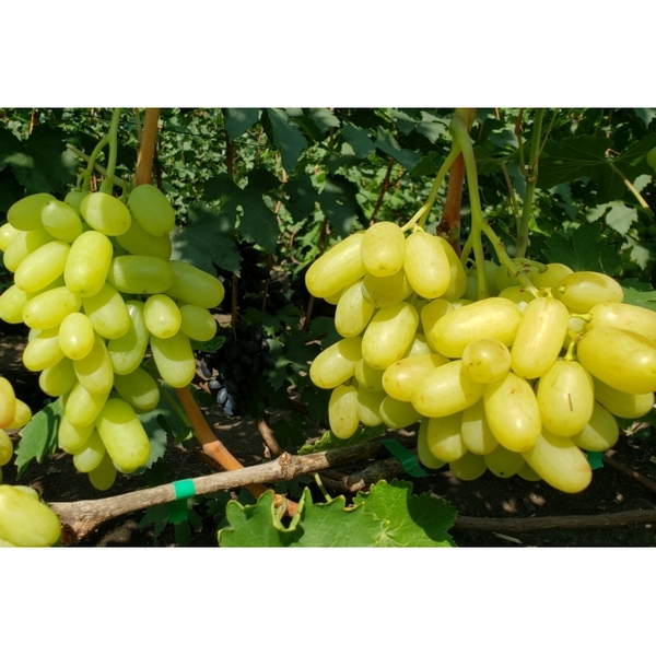 Виноград "Блондинка" - це найновіша гібридна форма винограду селекціонера Калугіна В.М. Термін дозрівання ранній (110-115 днів від початку вегетації до повного дозрівання), за календарем орієнтовно 10-15 серпня. Сила зростання висока. Кетяги великі, середньої щільності, циліндричні, масою 700-1300 г. Ягоди пальчикової форми, середнього розміру 24 х 48 мм, масою 15-20 г. Ягоди біло-жовтого кольору. М'якуш дуже щільний, хрумкий, м'ясисто-соковитий, з високим вмістом цукру. Важко відокремлюється від плодоніжки, відмінна транспортабельність. Смак гармонійний, сортовий. Від надлишку вологи ягоди не тріскаються. Кущі високорослі, висока врожайність, вимагає обов'язкового нормування кількості грон. Стійкість до хвороб вивчається, морозостійкість у перші роки спостережень -23°С. Особливості форми: дивовижний товарний зовнішній вигляд грон та ягід.