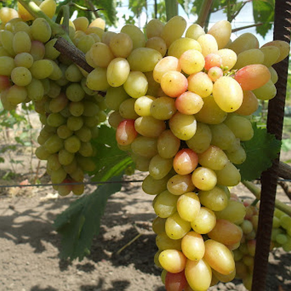 Нова їдальня форма раннього терміну дозрівання (105-110) Кореневласні кущі сильнорослі. Пагони визрівають рано та дуже добре. Укорінюваність живців хороша. Кетяги дуже великі 800-1100г і більше, циліндро-конічні, помірно пухкі, дуже красиві, на сонці з червоним переливом. Ягоди великі 50х28мм, масою 10-14г, соскоподібні, з яскраво-червоним кінчиком, вкриті щільним восковим нальотом. М'якуш ягід м'ясисто-соковита щільна, шкірка, що рветься, з'їдається, горошення та пошкодження осами за час випробування не спостерігалося. Ягоди дуже рівномірні за розміром та смаком, зовні схожі на ягоди Оригіналу, але відрізняються ранньостиглістю. Урожай довго зберігається на кущах, не втрачаючи товарних якостей. Форма відрізняється стабільною врожайністю. Морозостійкість мінус 22С. Стійкість до мілдью, оідіуму та сірої гнилі 2,0 бала.
