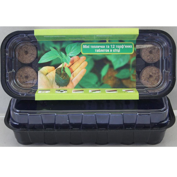 Набір: тепличка +12 торф'яних таблеток у сітці.