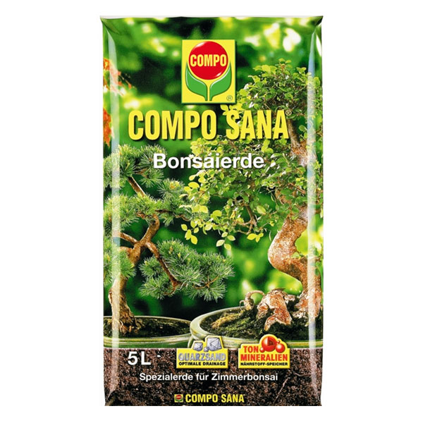 Торфосуміш Compo Sana представлена поживним комплексом на основі торфу, що здатен абсорбувати вологу та виділяти її при настанні несприятливих умов, створюючи оптимальний рівень вологи для формування бонсаю. Кварцовий пісок покращує властивості ґрунту та також здатний утримувати вологу. Оптимальна кількість мікро- та макроелементів покращує розвиток, підвищує стійкість рослин до хвороб, сприяючи збільшенню декоративності. Пориста структура забезпечує адекватну циркуляцію та аерацію кореневої системи, що запобігає розвитку грибка та появі шкідників.