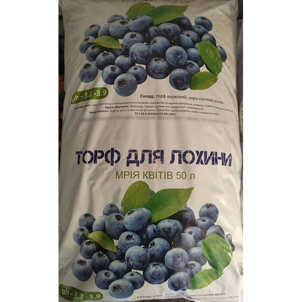 Склад: торф верховий, кора соснова мілка.Кислотність: pH 3,2-3,9.