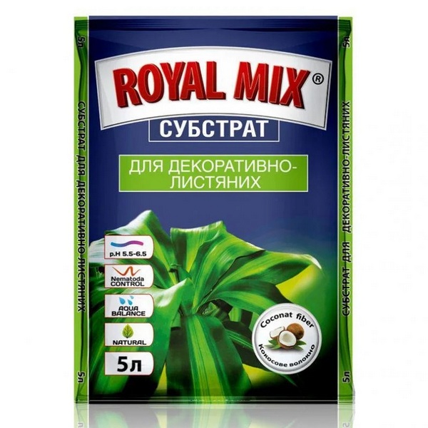 Субстрат «Royal Mix» для декоративно-листяних - готова до використання, екологічно чиста суміш, виготовлена з високоякісних прибалтійських верхових та українських низинних торфів з додаванням кокосового волокна, сапоніту та підвищеним вмістом азотних добрив провідних європейських виробників.