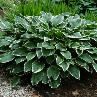 Хоста - декоративна кореневищна рослина, яка швидко розростається у великі плантації. Велике листя хости – її головна прикраса: вони відрізняються за формою, розмірами та кольорами в залежності від сорту хости. Хоста Форчуна Франсі - рослина середнього розміру, висота куща близько 50 см, діаметр до 90 см. Листя серцеподібне, темно-зелене з оливковим відливом, облямівка вузька, біла, розмір листа 25 на 17,5 см. Квіти фіолетові. Період цвітіння: липень, серпень. Місцерозташування: Невибаглива та універсальна рослина. Хоста красива, холодостійка, посухостійка, росте на світлі та в тіні і відмінно доповнює інші рослини. Використання: Хоста – унікальна рослина і може грати різні ролі в садовому дизайні. У першу чергу - це почвопокровник для напівтінистих або тінистих куточків саду. Хости чудово виглядають по краях садової доріжки, на березі садової водойми, перед чагарниками або біля межі галявини.