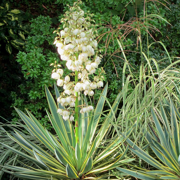 Юкка глоріозу ряболиста - присадкувата рослина з довгим, загостреним, бурим по краях листям і рожевими квітками. Завдяки своїй екзотичній, екстравагантній зовнішності набула свого широкого поширення серед любителів незвичайного. Має довгі, мечі подібні листи та неймовірно красиві ніжні суцвіття, які прикрасять будь-який сад. Особливості посадки: Найкраще місце для юкки буде відкритою для сонячних променів місцевістю. У посадкову яму потрібно помістити трохи дренажу, хоча грунт підійде будь-який, навіть пісок. Полив при посадці залишається виключно на розсуд садівника, так як це чагарник переносить навіть сильну посуху. Добрива: У плані допоміжних речовин, юкка вкрай невимоглива, жодних спеціальних добрив їй не потрібно. Іноді навесні після зимівлі можна дати їй трохи органіки, перегною. Важкі ґрунти краще дренажувати, для цього підійде бита цегла. Догляд: Хвороба може вразити цю рослину тільки у разі надто вологого ґрунту, головне не перестаратися з поливом. Коріння містить оптимальну кількість потрібних корисних для рослин, речовин, тому передозування добривами тільки шкодить, погано переносить хімічні склади або стимулятори. Морозостійкість: Середня. Стійко переносить зиму, але не холод. Оптимальна температура в зимовий період 1-2 градуси, тому краще накрити у морози, так вона вистоїть і нижчі температури. Розмноження: Найлегше розмножується шляхом розподілу кореневищ. Живці по 5 см довгою потрібно трохи підсушити на відкритому повітрі протягом пари годин. Також навесні та восени кущ може дати живці, які легко відокремлюються та приживаються у піщаних ґрунтах. Насінням таку рослину розмножувати дуже важко і не завжди успішно.