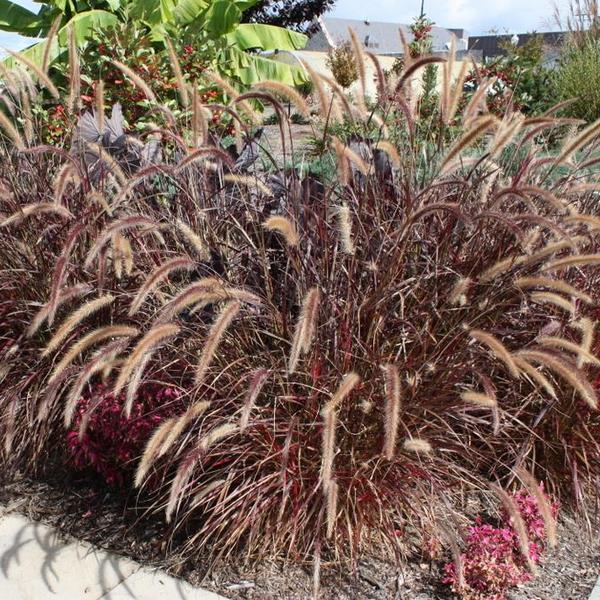 Зустрічається на кам'янистих схилах та осипах до середньогірського поясу в тропічній та субтропічній зонах північного сходу Африки та півострова Аравія. Багаторічні рослини 70-130 см заввишки, що утворюють густі дерновини. Листові платівки 0,2-0,6 см шириною, зазвичай плоскі. Волоті колосоподібні, 15-35 см завдовжки, трохи односторонні і більш-менш поникаючі, рожеві або пурпурні, відносно пухкі, колоски в групах по 1-3, в нижній частині оточені перистих волосся щетинками до 3-4 см завдовжки. Цвіте у другій половині літа – на початку осені. Зимує з укриттям. Рослина з дуже гарними волотями. Може використовуватись для сухих букетів.
