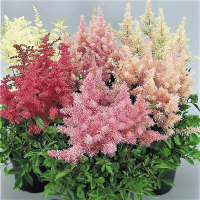Астильба – це багаторічні трав'янисті квіти. Ця рослина досягає від 15 до 100 см у висоту в залежності від сорту і має щільну крону з ажурним листям і численними прямостоячими пагонами. Листя зелене, складне, перисте. Прекрасно підходить для посадок на клумбах, кам'яних гірок, декоративних водоймах, фонтанах. Квітки дрібні, білого, світло-рожевого, рожевого, кремового, червоного або блакитного кольору, зібрані в суцвіття ромбічні або волотисті. Віддає перевагу родючому, багатому на гумус, вологому грунту для зростання. Росте на сонці, потребує постійного поливу. Чи не переносить посухи. Морозостійка рослина, на зиму можна не вкривати. Стійка до хвороб рослина.
