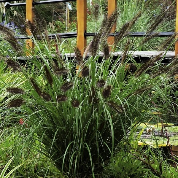 Цей сорт пенісетуму відрізняється надзвичайно темним забарвленням колосків – вони мають майже чорний відтінок і ефектно виділяються на тлі витонченого листя.