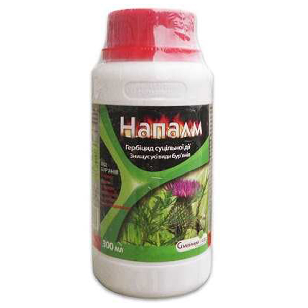 Напалм - це системний гербіцид загальної дії для знищення одно- та багаторічних бур'янів при вирощуванні овочевих культур. Обробку ґрунту для знищення однорічних злакових та дводольних бур'янів проводять навесні за два тижні до посіву насіння або висадження розсади культури, для знищення багаторічних бур'янів обробку необхідно провести після збирання врожаю. Робочий розчин: для однорічних бур'янів – 20-40 мл на 3-4 л води на 1 сотку, для багаторічних – 40 мл на 3-4 л води на 1 сотку. Приготовлений розчин використовувати за один раз.