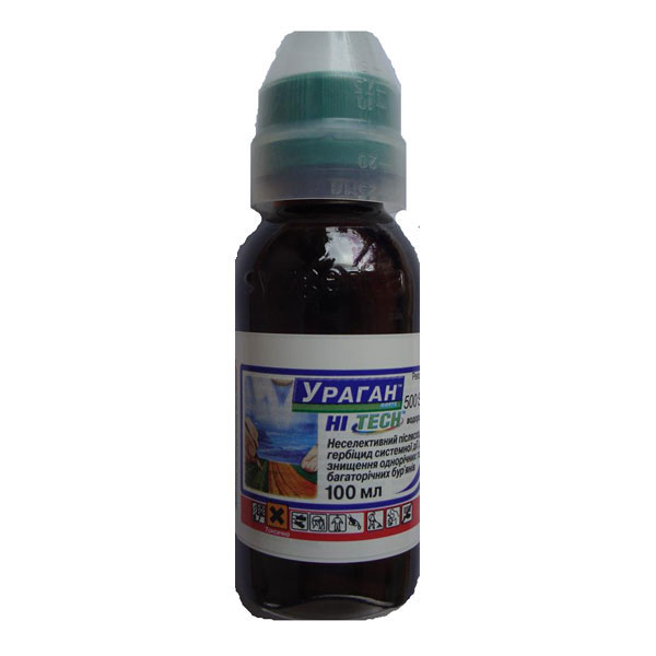 Ураган Форте - післясходовий гербіцид системної дії для знищення однорічних і багаторічних бур'янів, що містить унікальну поверхнево-активну речовину, що забезпечує швидку та ефективну дію препарату - препарат швидко проникає через листову поверхню бур'янів і розподіляється по всій рослині, включаючи її кореневу систему. Знищення бур'янів настає вже через 3-5 днів після застосування: рослини поступово жовтіють, буріють та відмирають, а повне знищення – через 2-3 тижні залежно від погодних умов. Найкращий результат досягається при застосуванні препарату у фазі активного росту бур'янів у теплу погоду за достатньої вологості ґрунту. Препарат не токсичний для бджіл та безпечний для навколишнього середовища. Норми витрати: 20–40 мл препарату на 3–4 л води на 1 сотку.