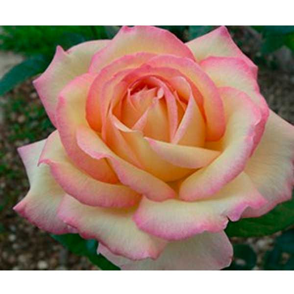 Гіллястий сильнорослий кущ до 1,3 м заввишки з блискучим темно-зеленим листям. Квітки дуже великі, яскраво-жовті із рожево-червоним краєм, з легким ароматом. Заслужено популярна троянда, кущ добре виглядає навіть коли не цвіте. Стійка до хвороб та зимостійка троянда, легка у вирощуванні.