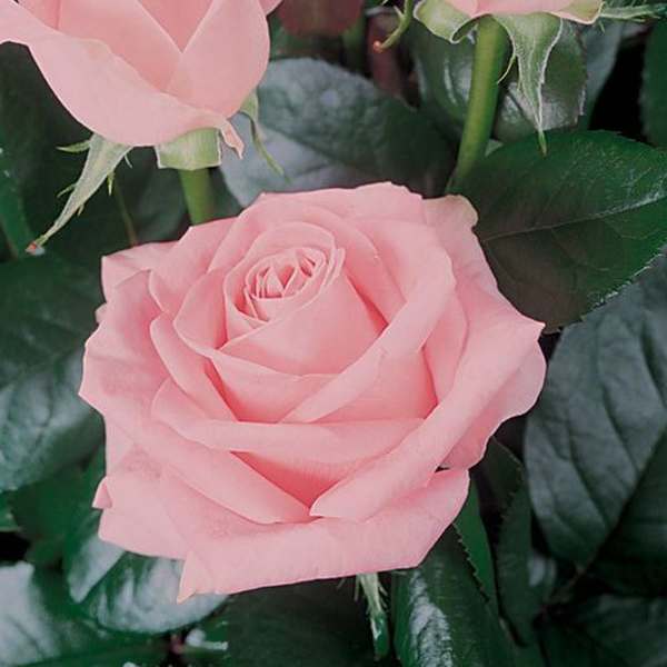 Висота куща: 100 -140 см Ширина куща: 80 - 90 см Колір: рожевий Розмір квітки: 12 см Аромат: ніжний Тривалість цвітіння: рясне Стійкість до хвороб: висока Троянда Merhen Kenengen - ефектний німецький сорт чайно-гібридної троянди. Подовжено-бокаловидної форми бутони мають прекрасне ніжно-рожеве з фіолетовим відливом забарвлення. Кількість густомахрових пелюсток зазвичай коливається в районі 20-25 штук. Квітка, що розпустилася, в середньому 10-13 см. Кущ сильнорослий, висотою 100-140 см. і шириною до 80-90 см. Аромат ніжний, нагадує чайний з нотками меліси. Пагони прямі, нараховують по одній, максимум 2-3 квітки на стеблі. Листя густе, блискуче, темного забарвлення. Сорт постійно квітучий. Цвітіння рясне, тривале, протягом усього сезону. Зимостійкість вища за середній рівень. Стійкість до захворювань висока, кущ майже хворіє. Ідеально підходить для зрізування. Довго стоїть у вазі (близько 12-14 діб). Добре підходить як групова троянда.