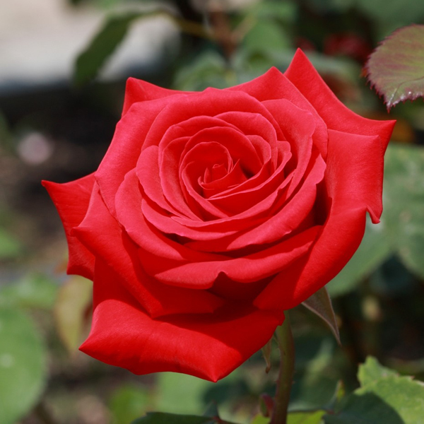Період цвітіння: повторноквітуча Висота: 100-125 см Ширина куща: 75 см Розмір квітки: 11-12 см Колір: червоний Стійкість до захворювань: висока Прекрасна великоквіткова бархатисто-малинова чайно-гібридна троянда, яка була виведена як зрізувальний сорт, проте чудово підходить і для саду, має приємний легкий аромат . Троянда розпускається повільно з чудових ідеальних бутонів. Зовнішні пелюстки закручуються, а внутрішні повільно розгортаються у класичний келих. Виділяється рясним цвітінням, квітка яскраво-червона і через кілька днів стає малиново-рожевою. Сорт дуже стійкий до хвороб.