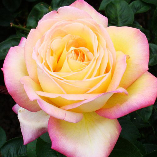 Квітки троянди дуже великі (13-15 см у діаметрі), махрові та красиві на всіх стадіях розпуску. Колір квітки зазвичай ніжно-жовтий із малиновим краєм, вигоряє до кремово-рожевого. Інтенсивність кольору та відтінок залежить від погоди та пори року. Цвітіння повторне, рясна. Запах змінюється від слабкого до сильного фруктового аромату. Кущ заввишки до 100-150 см, шириною до 100 см, сильнорослий. Листя щільне, яскраво-зелене. Стійкість до хвороб хороша. Стійкість до дощу хороша. Чудова троянда для саду. Добре виглядає на штамбі. Має величезну кількість нагород.