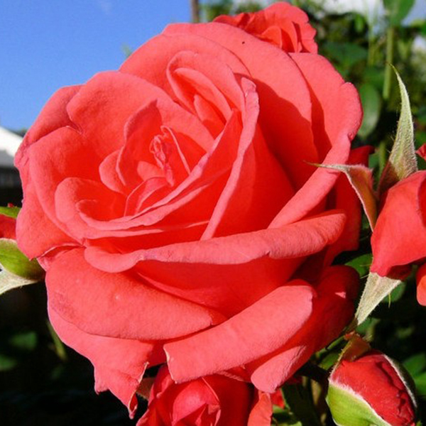 Роза чайно-гібридна Монтесума - чудова грандіфлора американської селекції (Каліфорнія, 1955 р), володарка великих (9-10 см) квіток незвичайного червоно-лососевого кольору, що виділяють легкий, приємний аромат. Майже кулясті бутони відкриваються повільно. Цвіте двома хвилями, з відпочинком у середині літа. Чудова у зрізанні. Кущ заввишки 120-130 см, статний, гіллястий, листя насиченого зеленого кольору, стійке до хвороб. Витримує морози до -20 °С Саджанець упакований у пакет з торфом Рекомендації з посадки та догляду: Кращий час посадки: осінь та весна. Підбирають місце на сонці або у легкій півтіні. Яма для саджанця повинна бути діаметром 50-70 см, залежно від пухкості грунту. Посадкову яму заправляють перегноєм і компостом, що добре перепрів. При посадці кореневу шию не заглиблювати! Після посадки рясно полити. Трояні потрібно забезпечити регулярний полив, підживлення та своєчасне правильне обрізання. На зиму в холодних кліматичних зонах чайно-гібридні троянди підгортають, укривають хвойними гілками та агроволокном.