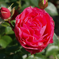 Належить до чайно-гібридних троянд. Яскраві квіти діаметром досягають 10 см поодиноко формуються на міцних квітконосах. Стебла сильні утворюють пишний, розлогий кущ, висота якого в середньому досягає 90 см, ширина куща приблизно досягає такого ж розміру. Махрові бутони яскраво-рожевого забарвлення формують із 50-65 пелюсток із легким зубчиками.