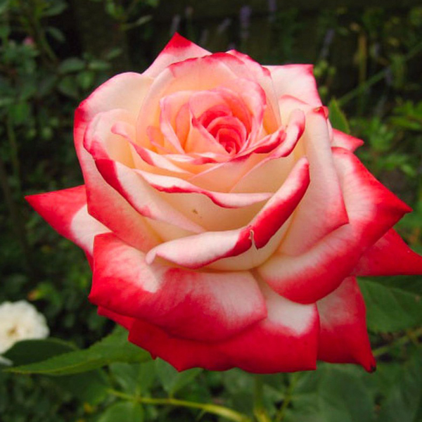 Роза чайно-гібридна Імператриця Фаррах (Empress Farah) - напрочуд прекрасна двокольорова троянда. Її цвітіння подібно до магії: темно-червоний щільний бутон, розпускаючись, оголює внутрішню білизну квітки і ніби світиться зсередини. Чорно-червоні краї пелюсток красиво і м'яко контрастують з білою основою і виглядають дуже елегантно. Квітки великі (12-13 см), по одному на стеблі, рідше за кілька. Аромат дуже ніжний, приємний. Цвітіння тривале та рясне. Чудова у букеті, довго стоїть у вазі. Кущ високий, міцний 100-120 см заввишки. Листя темно-зелене, блискуче, не уражається хворобами. Витримує морози до -17- -20 С