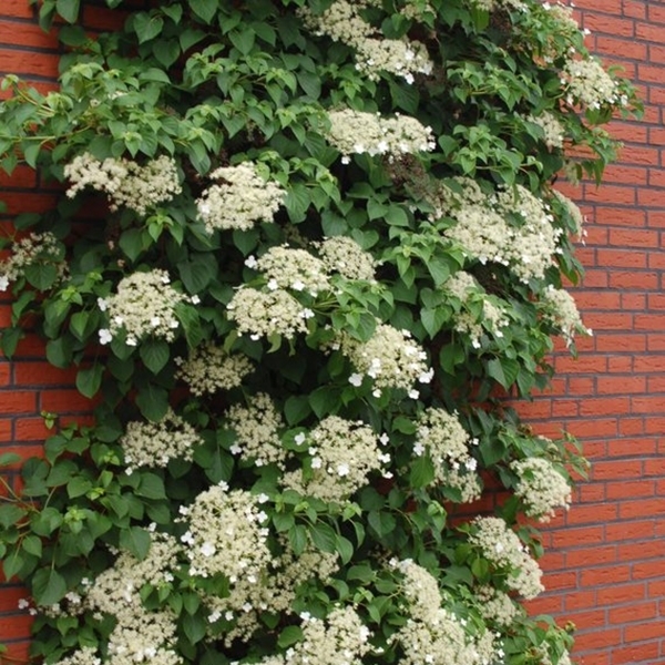 Гортензія черешкова Петіоларис - швидкозростаюча, морозостійка, кучерява ліана, яка утворює масу повітряного коріння, що дозволяє їй підніматися вгору до 20 м. Це найвища черешкова гортензія з великими щитковидними суцвіттями білого кольору. За відсутності опори може повзти по землі, а діставшись невеликої огорожі, може сформувати невисокий кущ. Рослина відрізняється високою морозостійкістю. Потужна листопадна ліана з втечами, що розростаються в сторони, на яких є коротеньке повітряне коріння. Доросла рослина має висоту близько 20 м і стільки ж може розростатися і завширшки. Швидкість зростання – близько 0,5-1м за сезон. Втечі: Дуже мальовнича архітектура пагонів підкреслюється їхньою рельєфною корою, вигинами, тріщинами, на яких утворюється повітряне коріння, завдяки яким рослина утримується на опорах. Молоді пагони світло-зелені пізніше стають коричневими. Листя: Черешкові, листова пластина із злегка загостреною верхівкою, округлої форми по краю зазубрені, забарвлення мають темно-зелений, блискучі. Квітки: Кремово-білого кольору, зібрані в щиткоподібні суцвіття, що досягають діаметром близько 20 см, з приємним ніжним ароматом. Цвітіння: Hydrangea anomala Petiolaris починає цвісти в липні і триває до серпня. Місцезнаходження: Краще розвивається в півтіні, тому що на сонці листочки можуть підгоряти. Гортензії Петіоларис дуже важливо мати достатній та регулярний полив. Підійде родючий, пухкий, трохи підкислений, вологий грунт. Використання: Ця гортензія добре виглядає живою огорожею. З її допомогою можна прикрасити ганок, альтанку, стіни будинків, стовпи, старі дерева, які вона огортає як покривалом, з рясним суцвіттям по всій її довжині. Також гортензія Петіоларис часто використовується для декорації берегів водойм і зміцнення схилів, а також як ґрунтопокривна рослина під кронами дерев.
