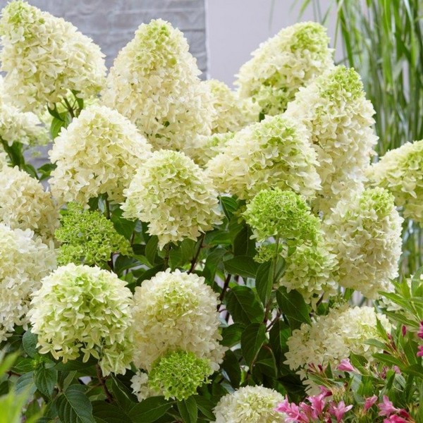 Висота дорослої рослини досягає 120 см, діаметр крони – 70 см. Пагони прямостоячі, вкриті насичено-зеленим листям конічної форми. Під час цвітіння під вагою суцвіть можуть згинатися, тому потребують опори. Цей сорт гортензій відрізняється від інших великими пелюстками квітів, а розміром суцвіття більше схожі на бузок або гіацинт. Висота суцвіття 30 см, діаметр – 20 см. У липні квітки зеленувато-білі, до вересня набувають рожевого відтінку.