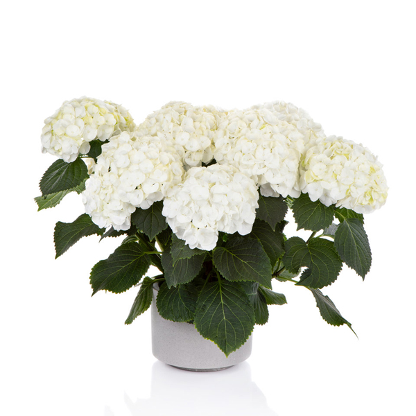 Гортензія крупнолистова Hi Ice (Hydrangea macrophylla Hi Ice) - це декоративний сорт з інноваційної серії Hi Breeding, який виділяється кристально-білими суцвіттями та винятковою міцністю пагонів.