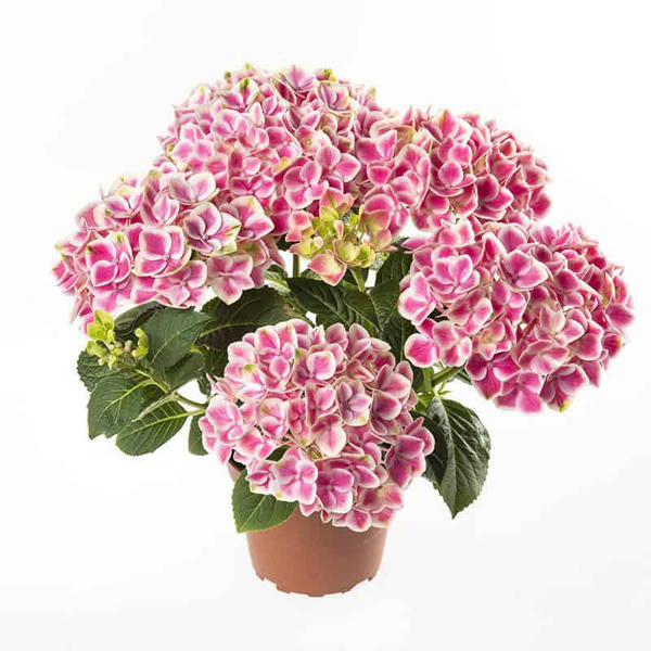Гортензія крупнолистова Saxon Candy Heart - це декоративний сорт з німецької серії Saxon, що відрізняється незвичайним двоколірним забарвленням квіток з контрастною облямівкою.