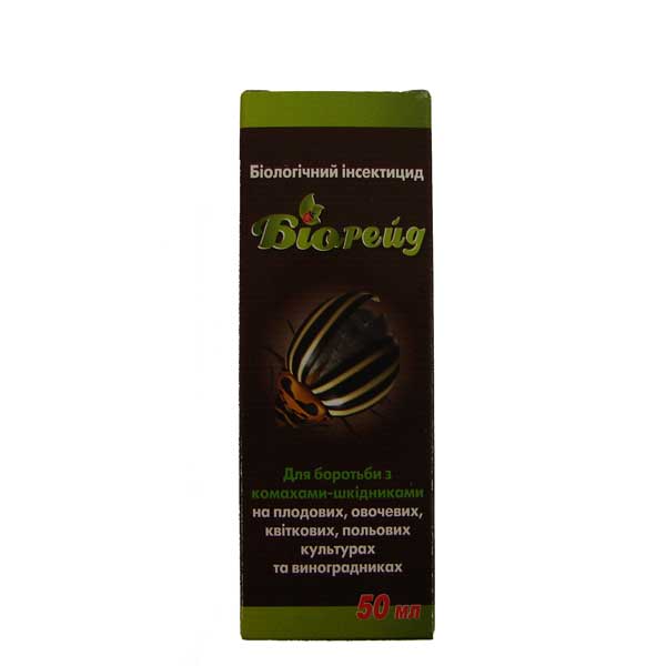 Органічний інсектицид для боротьби із шкідниками. Переваги: - Швидкий ефект - Загибель комах настає через 1 - 2 дні. - виключає виникнення резистентності. - Опади через 30 хвилин після обробки не впливають на ефективність препарату. - працює у широкому температурному режимі від +10°С до +25-35°С. - можна обробляти за 1 – 2 дні до збирання врожаю.